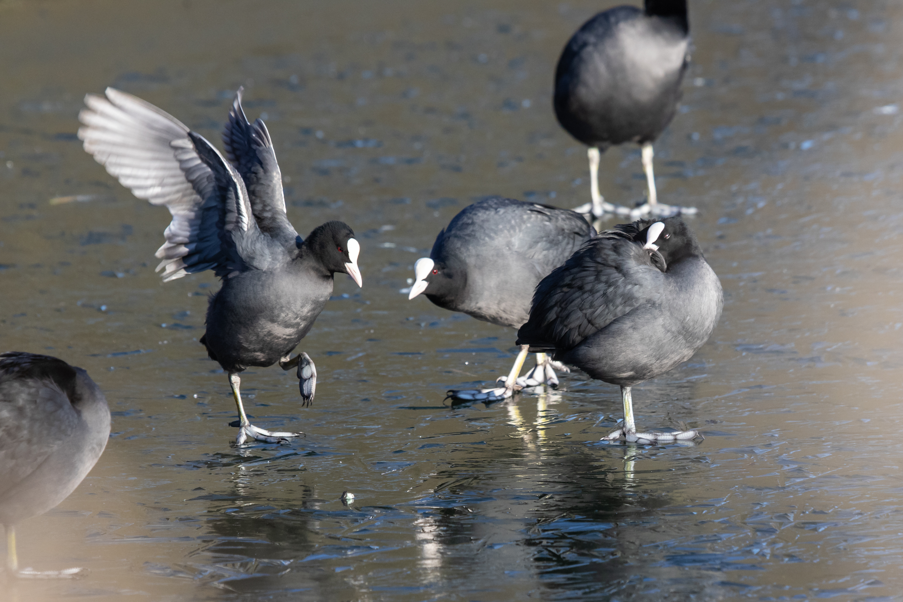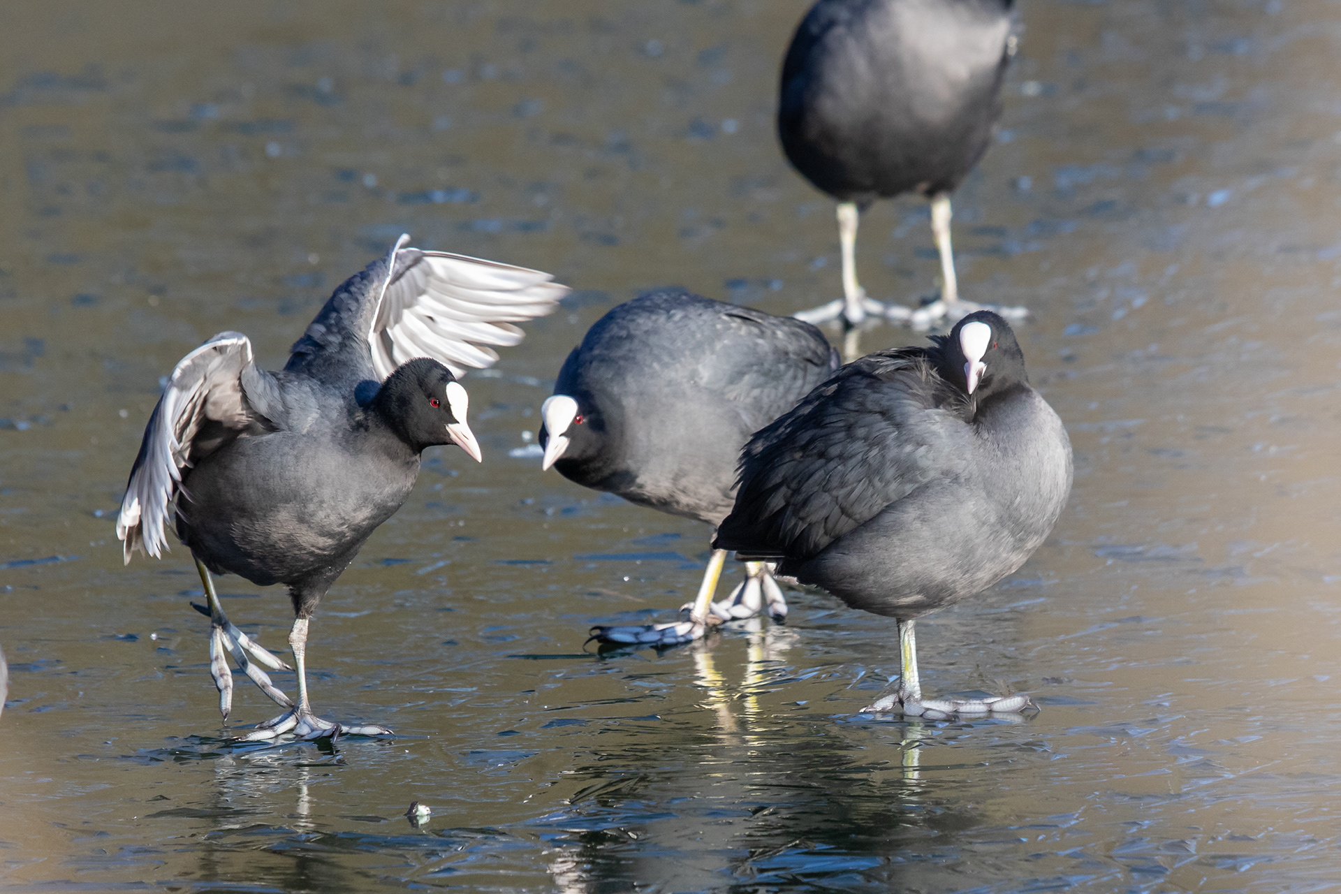 Blässhuhn und Teichhuhn